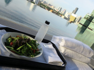 少し遅いのですがランチを食べてなかったのでサラダをオーダします。プールはリビング・ルーム(ダイニング)の隣にあり頼める内容もリビング・ルーム(ダイニング)と同じです。