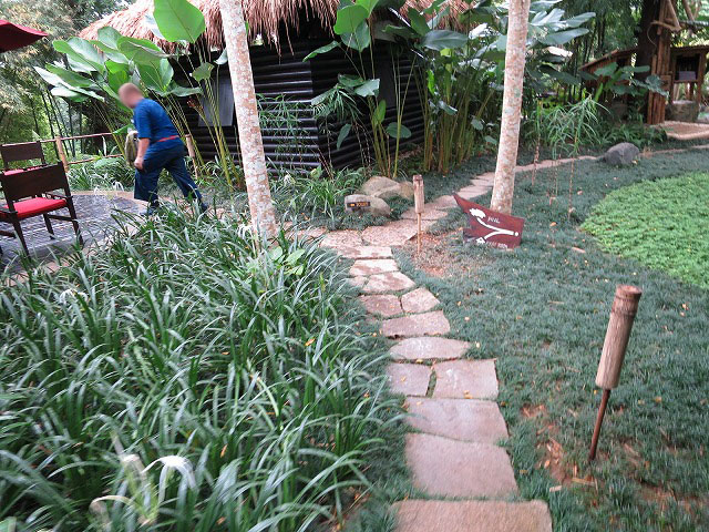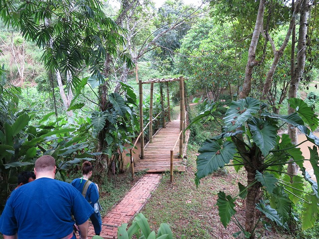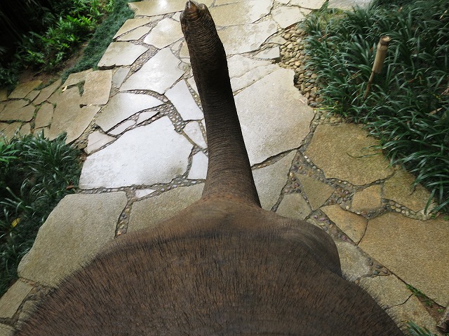 水を浴びて終了では無く、更に象との散歩は続きます。結局は最初のレセプション・レストランまで象で移動する事になりました。象の頭の上の安定度は非常によく全然疲れません。