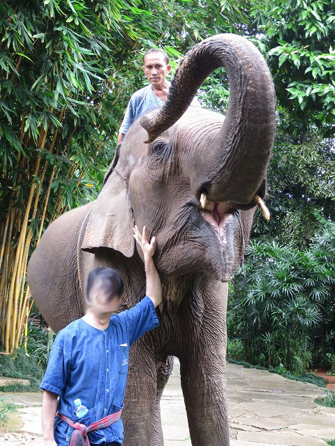 Our jet setting Elephant, Yuki was sold and shipped to Japan as soon as she was weaned from her mother, so fast in fact that she did not yet have a name. She was named Yuki on arrival, Japanese for snow. Unfortunately Yuki was not able to cope with the cold weather and in Japan and was soon shipped back home. For the next three years Yuki worked in the Bar strip in Pattaya’s tourist area, taking part in a cabaret show every night, until she got too big to perform. Yuki now enjoys her quiet life in the Golden Triangle, although her superior intellect and inquisitive nature sometimes gets her into trouble. She likes to keep her mahout on his toes by eating things she shouldn’t and going wandering to places she shouldn’t, like the neighbours’ banana plantations.