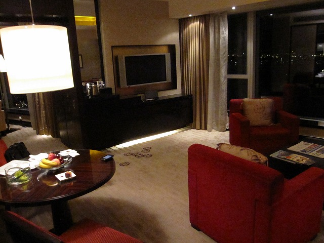 更に空港を移動して次は車のドライバーにバトンタッチです。車はベンツで30分ほどでホテルに到着します。場所はIFCの中にあり2005年のオープンです。移動中の音楽の選択も可能で良い移動でした。