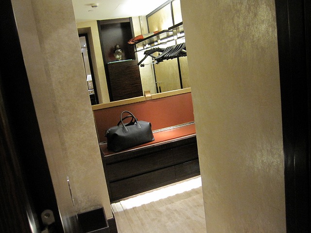入って直ぐ左手にはクローゼットがあります。今回は珍しくダンヒルのボストンバッグで移動していました。クローゼットの中には大型の金庫もあり収納容量は総てに置いて男一人では十分でした。