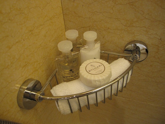 バスルームの内容も悪くありません。ジャグジーはありませんが深くて日本人好みのバスタブです。シャワールームも分離しておりレインシャワーも楽しみます。アメニティはブルガリなので私はあまり得意ではない仕上がりでした。