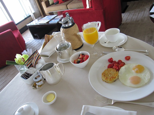 折角なので朝ごはんをルームサービスでお願いしました。オレンジジュースを卵そしてトーストの組み合わせは悪くありません。ダイエットにもなるように組み合わせました。