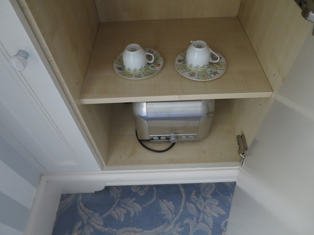 冷蔵庫やスナックそしてトースターにティーカップも完璧に備えられています。勿論ネスプレッソもあります。私の滞在プランでは基本は総てコンプリメンタリだと言われました。