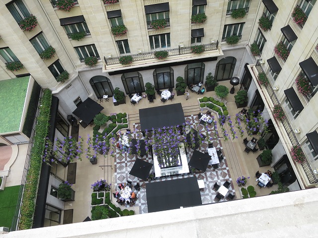 私のお気に入りはベランダです。下をのぞくと中庭にあるカフェが見えます。ホテル全体の構成が見えると共に夏の時期でも夕暮れになると丁度良い温度になり話し込むには最適な雰囲気です。
