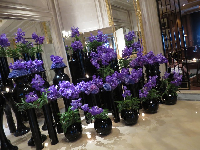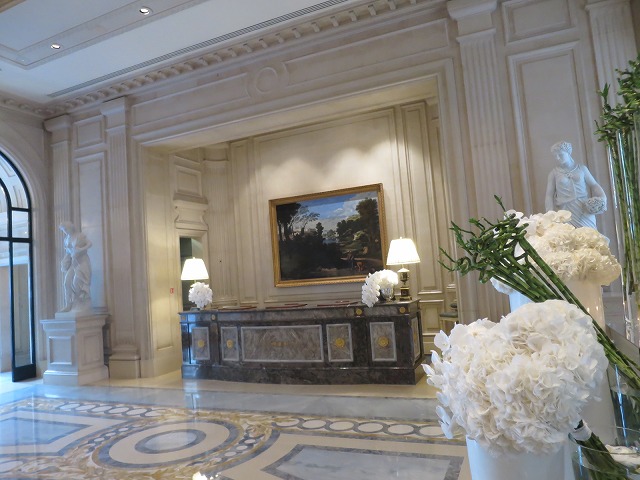ホテルに到着するとビシッとしたベルに扉を開けて頂きホテルの中に案内されます。ホテルの中に入ると先ずは花が目に飛び込んできます。このホテルは花が共有エリアには非常に多いです。帰ってきてからジョルジュ・サンクと思い出すと花が先ずはイメージにでてきます。