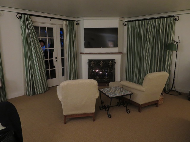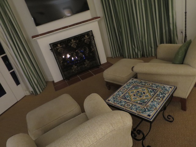 部屋の角には暖炉です!やはりアメリカの宿には暖炉は欠かせないですね。昼間は暑いとはいえ秋の音も聞こえる季節は夜になるとやはり寒く暖炉を優しく入れて時間を過ごします。この暖炉は薪ではなくガスで着いているのでコントロールは簡単でした。ただし最初は着かなかったのでエンジニアの方が来て少し調整頂きました。