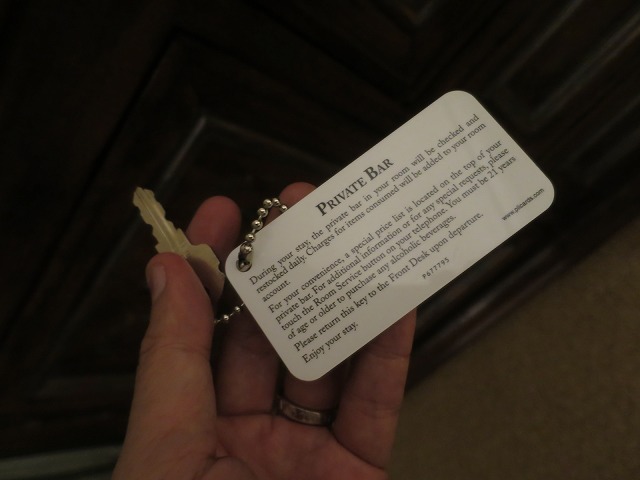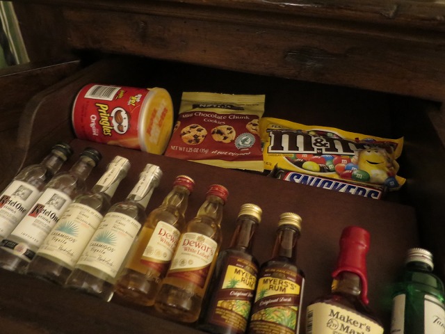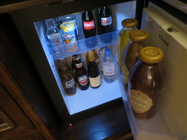この棚の中には冷蔵庫がありビールやソフトドリンクがあります。特にお酒のセレクションはかなりありました。冷蔵庫にちゃんと鍵がかかるのも懐かしい感じです。
