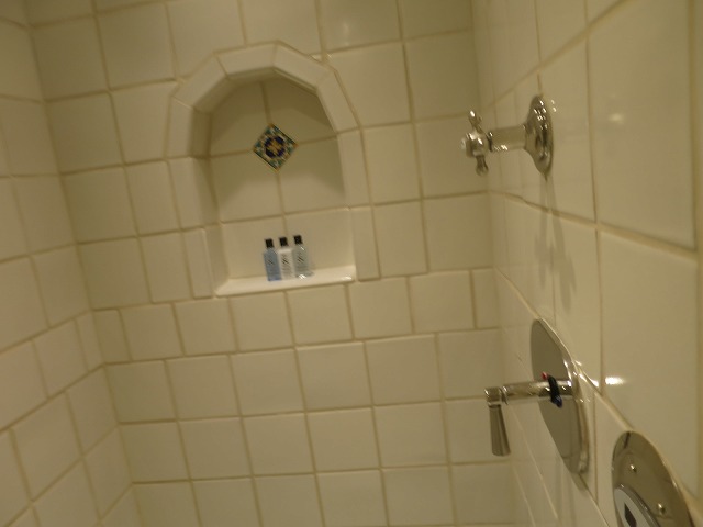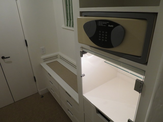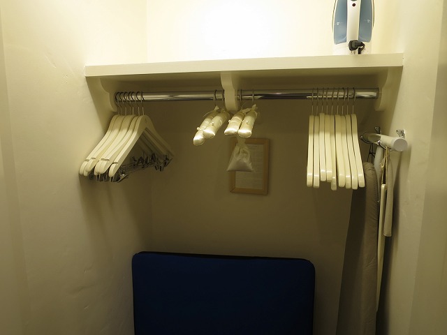 バスルームに向かう途中がクローゼットになっておりセキュリティボックスもこちらにあります。クローゼットの収納は相当に多く機能的です。一泊だけの滞在なのでスーツケースもほとんど開けずに過ごした私にはあまり使う必要がありませんでした・・滞在時間が短かったので選択を数時間でお願いしようとしましたが、エクスプレスサービスが夜には提供されておらず、選択は次の滞在先に持ち越しとなりました。
