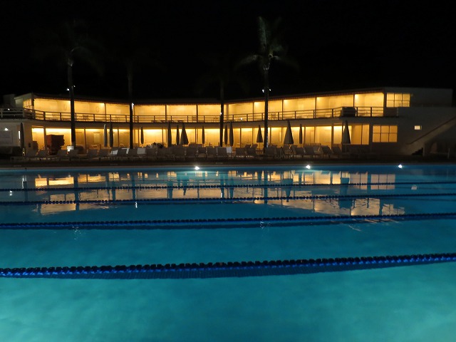 帰りは部屋まで少し距離があるので周囲を散歩しながら移動します。狭いながらこちらにもプールはありました。