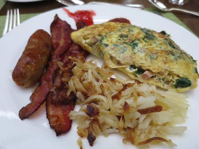 朝食も昨晩と同じレストランで頂きます。朝食もやはり品数豊富で味も素晴らしい!オムレツを私はチョイスしましたがこれまた元気が出る内容でした。これで今日のデスバレーを経由してラスベガスへの車の移動も問題なしです。