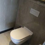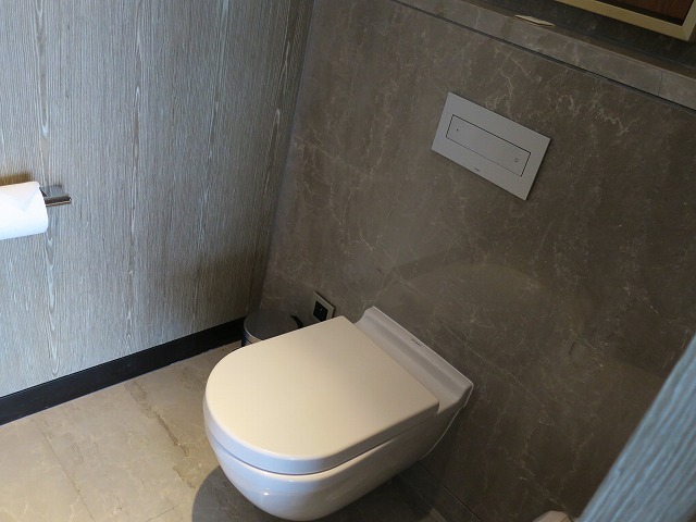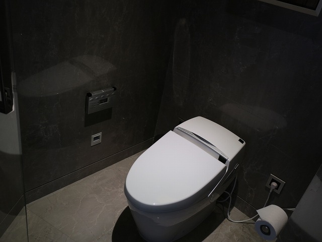 奥のお手洗いはプライベート用になります。こちらにはウオッシュレットが着いておりとても助かりました。磨き込まれた壁は鏡のようです。