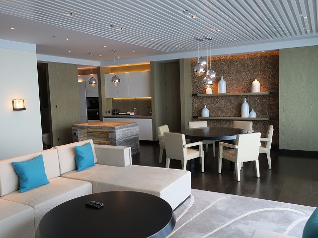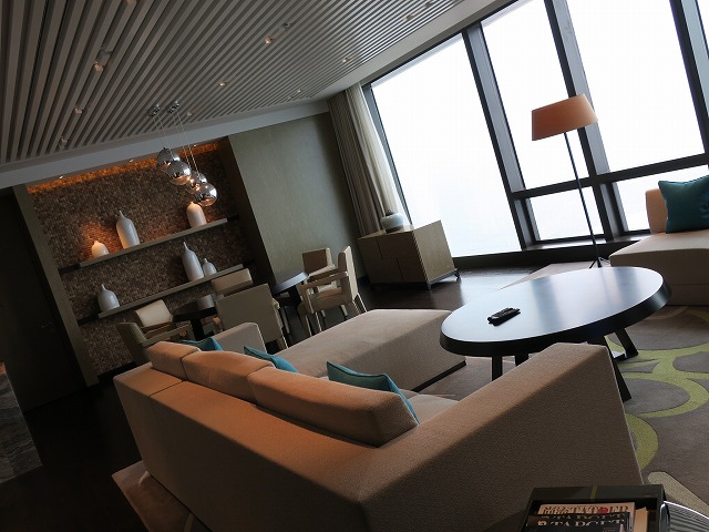 中に入ると・・やはりプレジデンシャル・スイート相当です。ちゃんと話を聞くとグランドハイアット大連の中で最高の部屋との事でした。名前があまりにも平凡だったので気が付きませんでしたが、4段階以上のアップグレードになっていました。