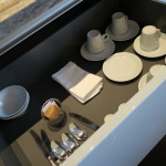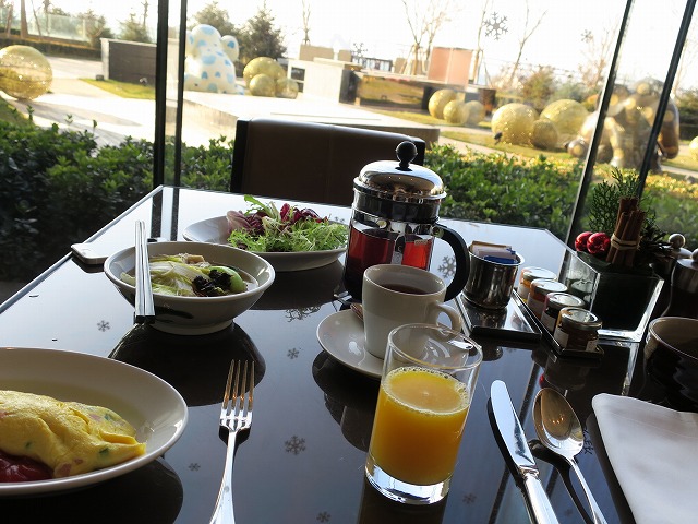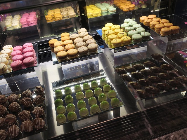 朝食は一階のショーキッチンで頂きます。その名の通りに見せることに気を使われているダイニングでした。選択も味も悪くありません。大満足の朝食を頂きました。帰りにはシュガーボックスでマカロンをお土産に買って部屋に戻りました。食べすぎですね!