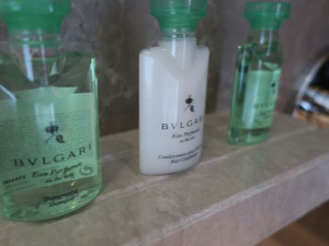 準備されているバスアメニティはブルガリでそろえられています。如何にもグランドハイアットですが、私はブルガリのシャンプー等は苦手なので自分で持ってきたものを利用します。