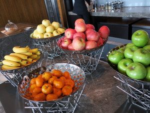 31階にはクラブフロアがあります。フルーツが品よく並んでおります。座席数もそれなりにあります。ここで時間があるときには紅茶を頂きながら友人のピックアップを待ちます。
