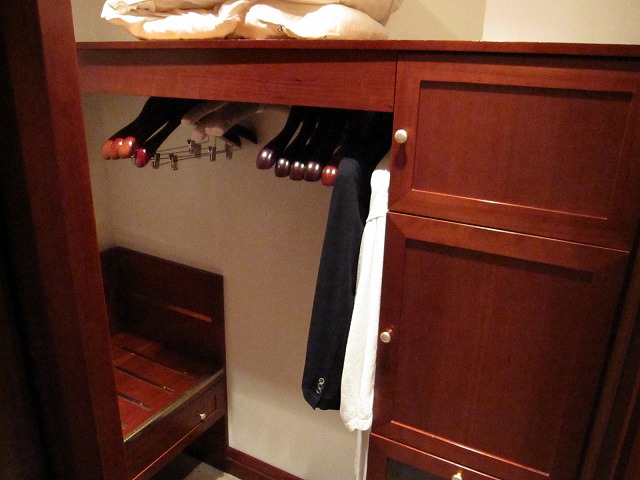 一人での旅の場合には、服の収納という意味では概ね問題はありません。気になる点は、人が歩ける場所が非常に狭い事ですね。二人で来た場合には大変なことになるでしょうね!またここにはセキュリティボックスも設置されていますが、かなり縦に大型です。セキュリティボックスは結構重要なので大きなことは良いことです。
