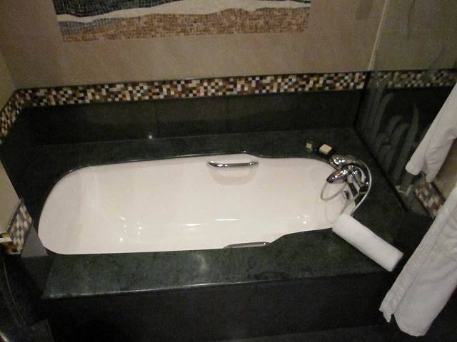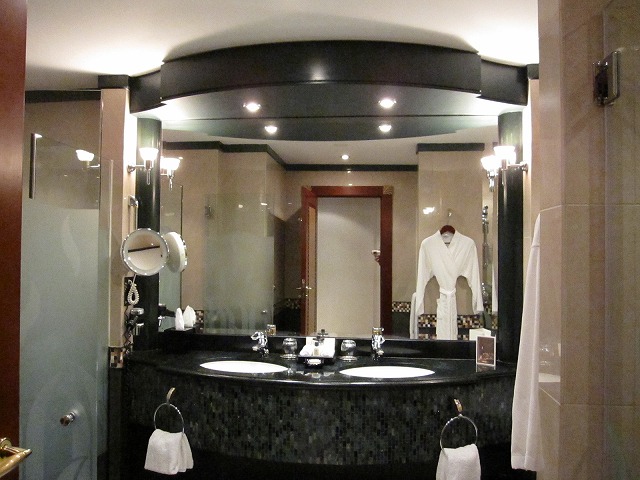 ホテルは5年ほど前にオープンしたとの事で新しくもなく、古くも無い感じです。設備的には十分なものを持っています。ウオークインクローゼット、バスタブ、シャワー、ダブルシンクの洗面台、大きなベッド、大きな机、プリンター、高速なインターネット接続、一点を除いて、ほぼ完璧です。