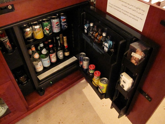 ミニバーもありますが、これはちょっと興ざめです。物を触っただけで課金されるパターンです。日本の安いビジネスホテルでは無いので勘弁してほしい設備でした。ただし中身は十分な物が準備されていました。