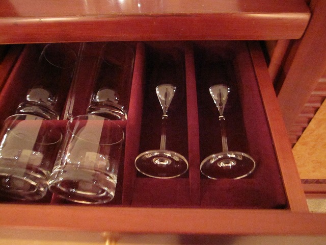 机も大きく準備されておりサイドテーブルも便利にできています。電源のコンセントが少ないのが少し気になりますが問題はありません。また便利なのはプリンターです。手元にあるので、いちいちビジネスセンターに持っていく必要がありません。必要なソフト類もサイドテーブルの中にあります。