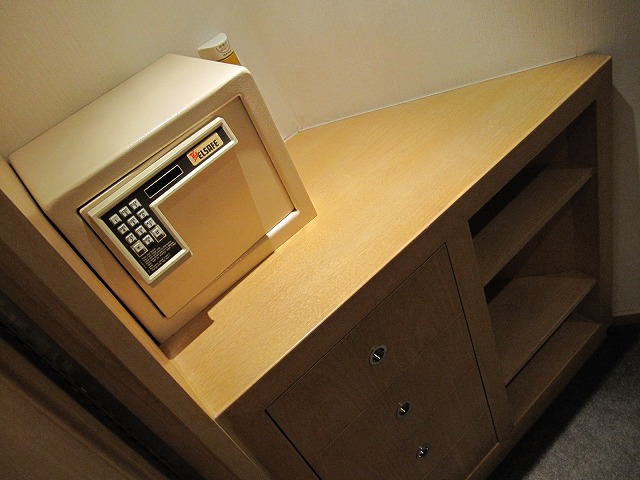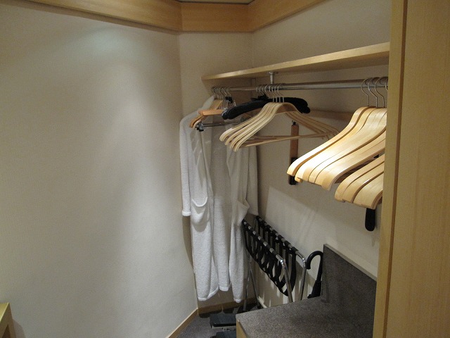 今回は意外な場所にクローゼットがありました。サイズは十分でウオークインできるので楽々の巣作りです。今回は持ってきている服がかなり多いんですが総て綺麗に収納完了です。またセキュリティボックスもこの中に準備されています。