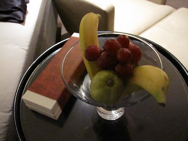 外出して部屋から帰ってくるとアメニティが総て準備されていました。フルーツ、チョコレート、Welcomeレターなどです。