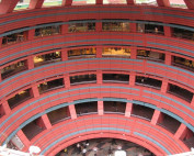 あの特徴ある建物のトップにはこうなっていました。何かバランスを取るのが目的なんですかね?下を見るとラウンジが広がっています。