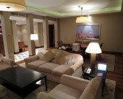 部屋は2ランクアップされており部屋が2部屋に分離した クラブフロアのエグゼクティブルーム(キングベッド)になっていました。 一泊はポイントを使用したのですが、AMEXの予約のおかげで良い部屋に宿泊できました。部屋の設備としては満足できるのですが、窓が狭く、解放感が少ないのが残念でした。