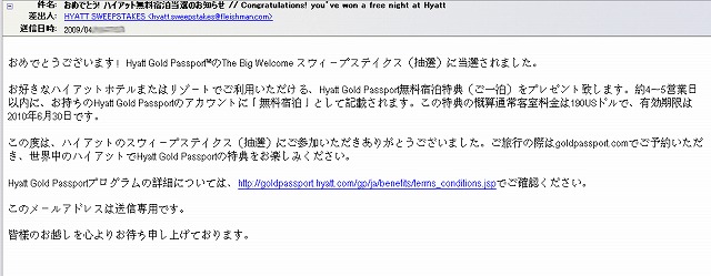 今年はHYATTさんと相性が良いみたいです。いきなり当選しました・・・。まだHYATTのWEBではキャンペーンを実施ているのに当選です!