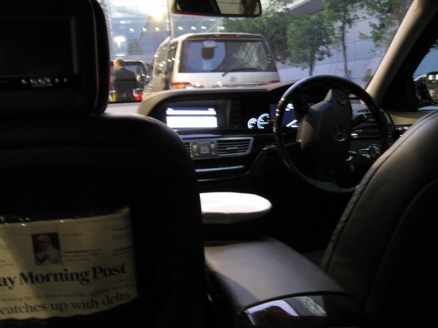 すっかり暗くなった香港の空港にベンツSクラスでの送迎です。車はピカピカに磨きあげられており、車のトランクにはカバーがしてあり心遣いを強く感じさせます。車に乗ればカオルーン側にあるホテルまでは半時間で到着です。