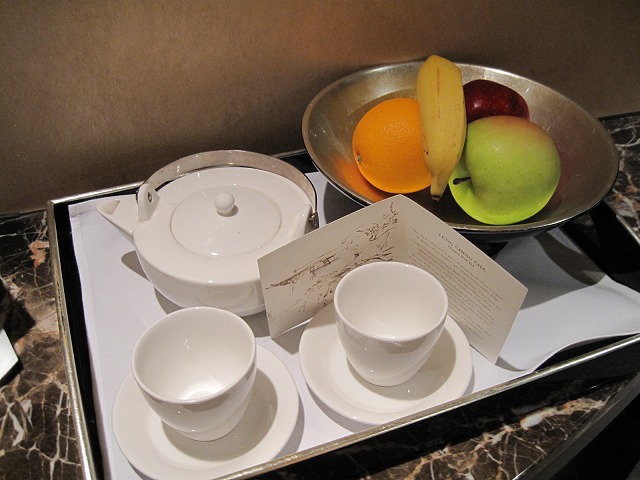 また準備されているWelcomeフードはフルーツとお茶は勿論、チョコレートまで頂きました。これがとっても美味しい!準備されているアメニティも文句なしの品揃えです!この雰囲気がとっても気に入りました。