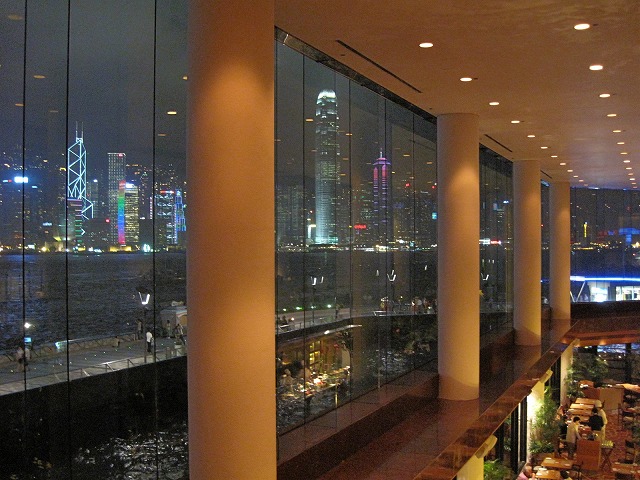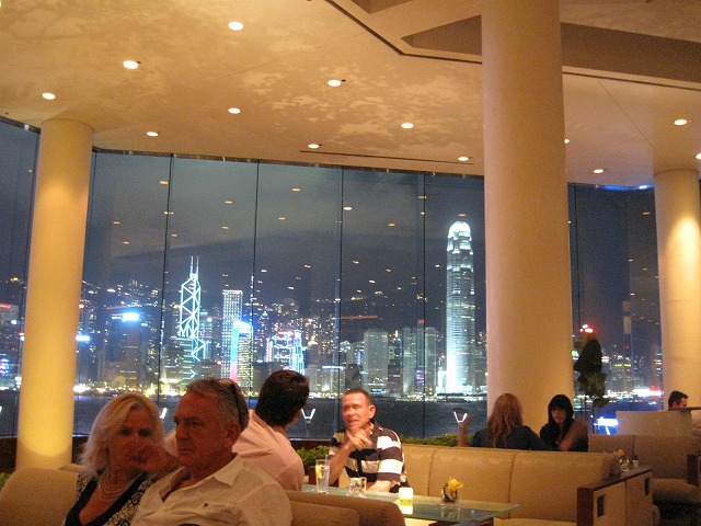 世界最高の夜景と言われるロビーラウンジですが、ビクトリアハーバーを眺めながらの休憩は昼間と夜とで大きく雰囲気を変えて楽しませていただきました。