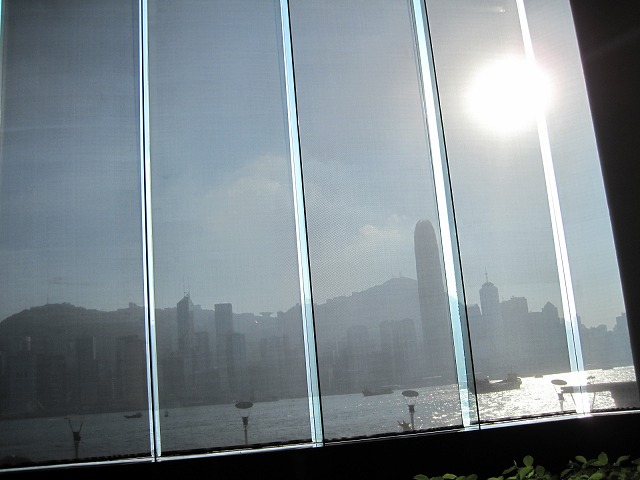 当然夜の景色には息をのむような感動がありました。昼はハイティーを楽しみながら日よけのカーテン越しに見る香港島の景色も一味違います。