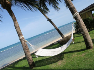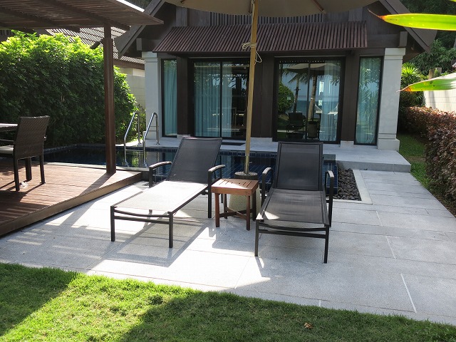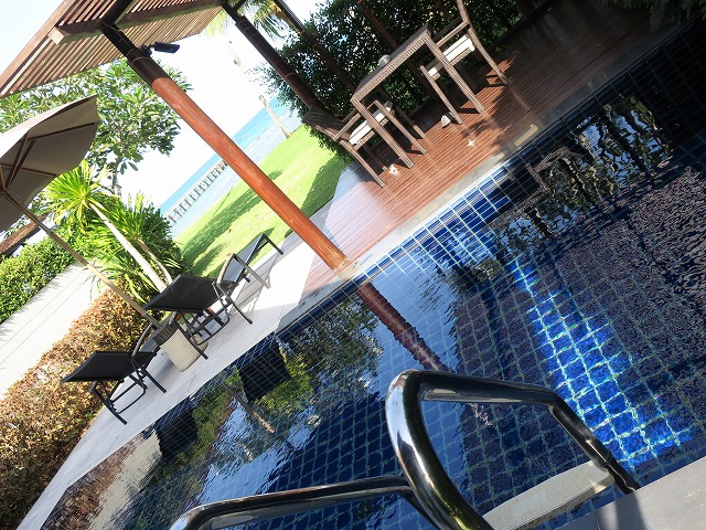 芝生のアリアは他の部屋の方とシェアしていますがハンモックがかかっておりユックリと熱いサムイの日差しを堪能できます。ただしこの庭は海と段差があり、このまま海に飛び込むことはできませんでした。ちょっと回り込む必要があります。