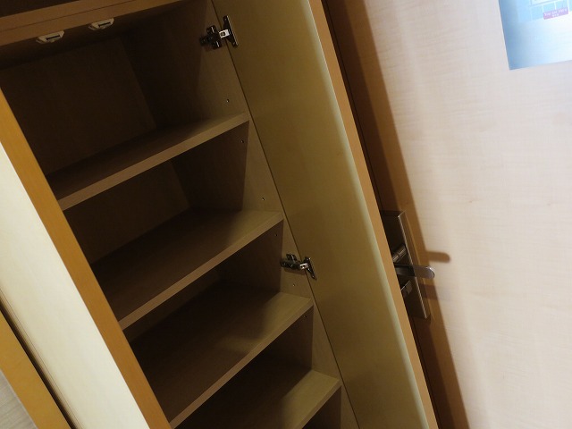 シンプルな扉を開けると右手に靴の収納です。かなりの靴を入れることができますが、今回は一泊だけだったのでボッテガの鞄一つ出来ている私には使い道がありませんでした。DNDや部屋の清掃依頼はボタン一つでお願いする事ができます。このスイッチの作りはシンプルですがスマートだと私は感じます。