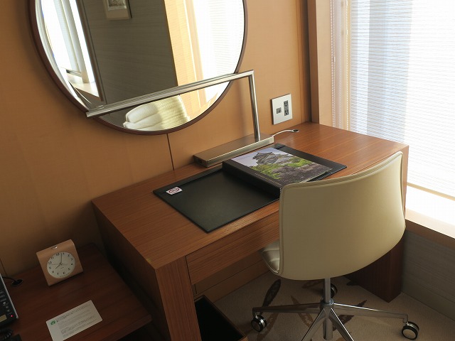 ベッドルームには小さいながら書斎机も窓側にあります。広くないので私は今回使用しませんでしたが、ホテルインフォメーションなどはこちらにセットされていました。