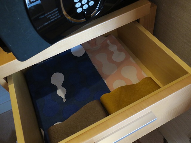 ベッドルームの中にはクローゼットがあります。ウオークインほどの広さはありませんが一人分なら問題ないでしょう。中にはセキュリティボックス、傘や浴衣などが準備されています。私は浴衣で寝るのが苦手なので、コンシェルジェの方にお願いしてパジャマを持って来て頂きました。ただしボタンの口が非常に狭くボタンを通すのに10分ぐらい苦戦していました。借りている物なので文句を言う場所では無いのでしょうが・・・