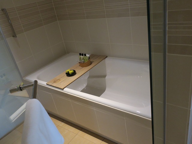 バスアメニティは木の板に乗せられているので和をイメージさせてくれました。AGRARIAのシャンプーは私に強く感じられるのですが、今回は何も持って来て居ないので遠慮なく使わせて頂きました。