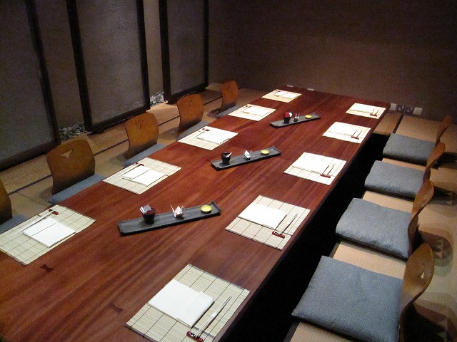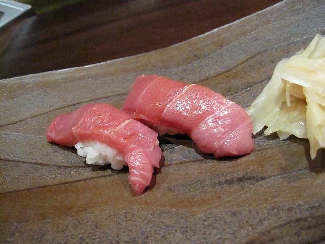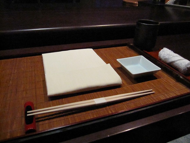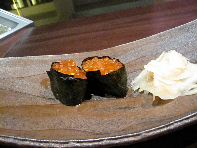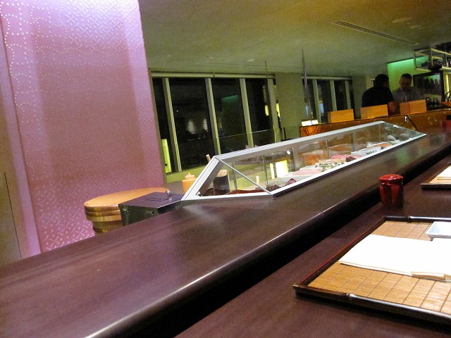 こちらのレストランは49階、50階、51階にまたがっています。階によって鉄板焼き、懐石、お寿司と分離されていました。移動は高層階用のエレベータで49階まで移動した後に、別のエレベータで49~51階は移動します。一部のフロアはまだ完成していませんが一番上の階で私は寿司を板前さんに握って頂きながら食事にしました。下のフロアでは10人が楽しめる座敷もありました。