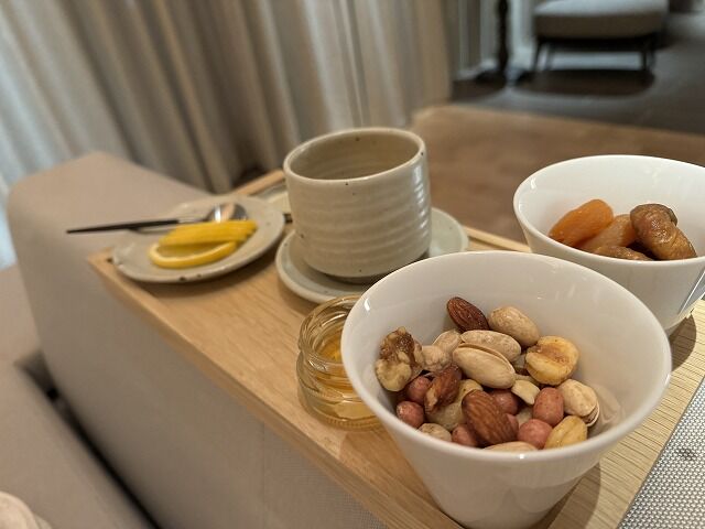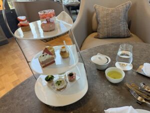 チェックインまでの時間を合わせるためにスパの後はアフタヌーンティーをランチ代わりにお願いしておきました。スパのスタッフに案内されてラウンジのスタッフに引き継いでいただけたのでスムースな対応です。