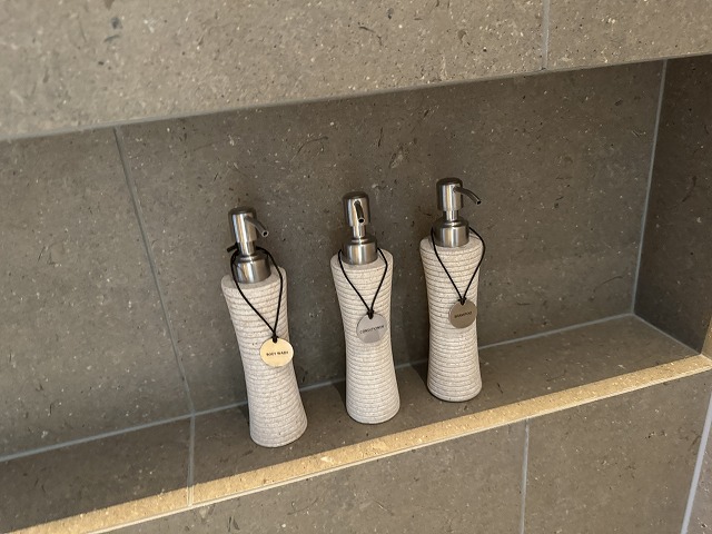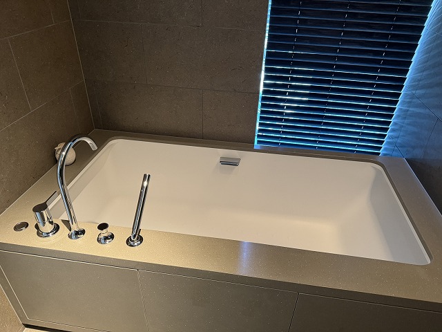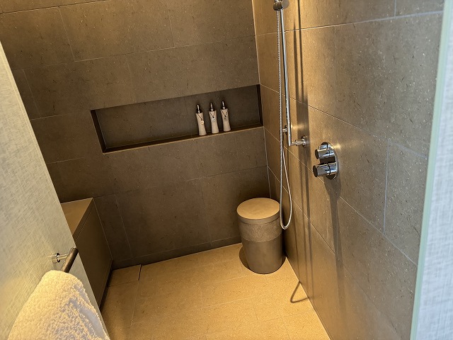 一番奥がシャワーとバスタブです。今回はアマン東京やアマン京都のようにお風呂の拘りは少なく普通のバスタブでした。プールもあるので子供達もバスタブに入ることはせずにシャワーメインで過ごしていました。