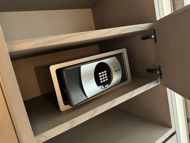 私は半年前(ハレクラニ沖縄滞在から)ランニングが趣味になり持ち込む服や靴の数は跳ね上がりました。それまでは都内の滞在はブリーフケース一つでも十分だったのがスーツケース丸々と持ち込むようになりました。家族もプールに向けて相当に持ち込みましたが全く問題なく余裕で収納です。スーツケースを置く場所も二つあり、パッキングも楽々にできます。もちろんセキュリティボックスもこちらに設置されていますので活用します。