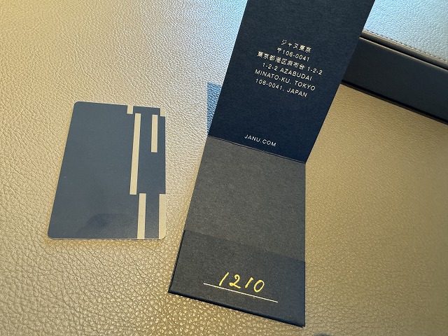 食事も含めて総てが終わったのは予定より数時間遅れてのチェックアウトになりました。スタッフの方もお見送り頂き開業の苦労話や楽しい話を色々と聞かせて頂けました。開業って大変ですが楽しそうでもあるなと思います。そして今回のタグはアマンとは異なり細くてシュッとしたデザインでした。