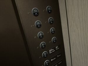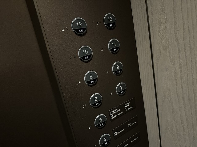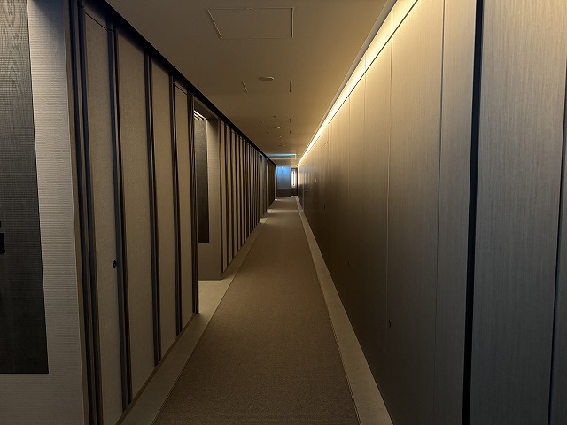 12階のエレベータを降りると落ち着いた雰囲気の廊下になります。エレベータはタッチレス式のボタンを使っていますが、服を持ちながらタッチしようとする総てのフロアを押したように反応するので二回目以降は指だけで丁寧に押すように気を付けました。