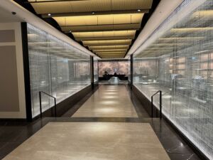 行先は麻布台ヒルズのレジデンスA棟です。有名なのは森JPタワーでこちらにアマン・レジデンスも別チームで入っています。新しい桜田通りには銀座以上にハイブランドのお店が開業の準備を進めていました。折角なので車のサンルーフを開けて頂きビルを見つけながら移動します。入口はレジデンスと同じ場所ですがジャヌは地下一階に車で下ります。
