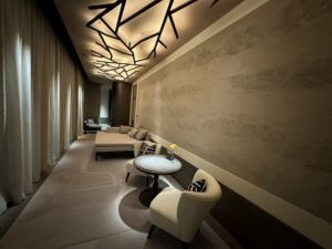 ここで初めてレセプションを見る事にもなりました。そういえば1階の入り口から3階のスパに直接移動したので5階のレセプションはこのタイミングが初めてです。和を感じながらもジャヌを作っていこうとする方向でしょう。新しいブランドの立ち上げ・しかも世界初のブランドなので苦労も大きいでしょうが遣り甲斐も大きいのではないでしょうか?