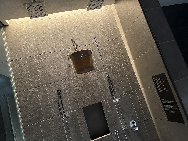 チェンジングエリアの中にはサウナ・水風呂・シャワー・レインシャワー・ドレッシングルームと必要な物は全てあります。
