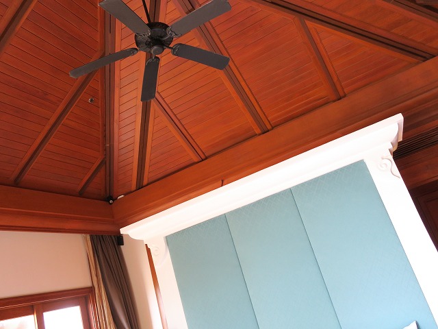 寝たときに天井が見えますが、その高さには驚きます。更にファンがゆっくりと回っておりプーケットの時間を楽しめます。もちろんファンのスピードはコントロールできます。これで外が晴天なら何も言う事は無いのですが(笑)