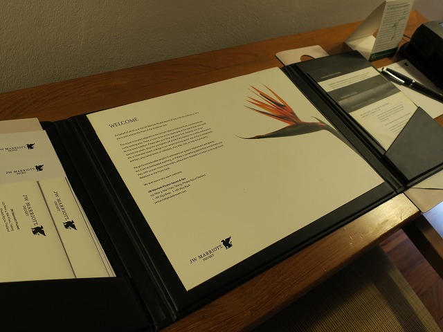 チェックインは部屋で行います。車を降りたレセプションの場所からバギーで少し移動します。JWマリオットは広大な敷地を持ちます。更にロイヤルビラは敷地の一番北側にあるので一度一般道に出てから戻ってくるように移動します。