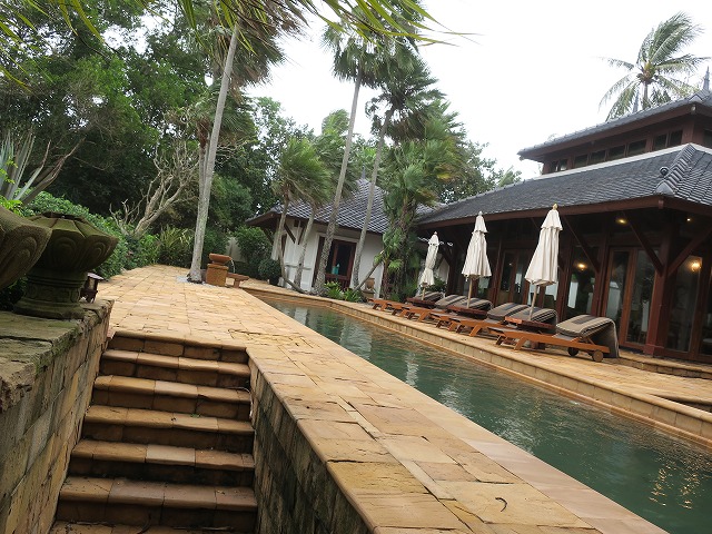 外には完全に泳ぐことが可能なプールが付いています。このデザインは悪くないですね。なんとなくパンコール・ラウのスパを思い出しました。深さも十分で自分たちのペースで楽しむ事ができます。友人夫妻はビールとワインを飲みながらプールを楽しんでいました。